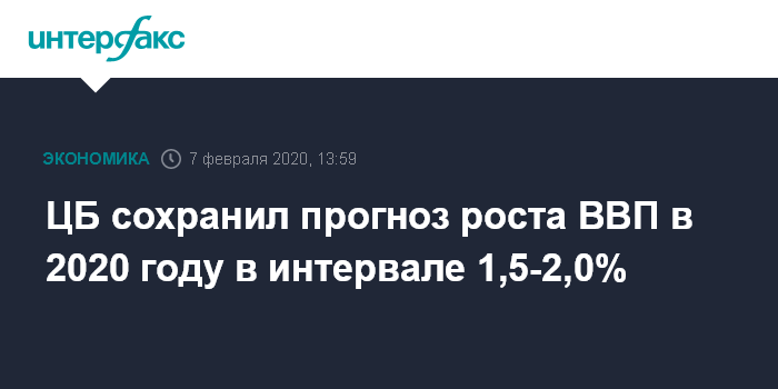ЦБ сохранил прогноз роста ВВП в 2020 году в интервале 1,5-2,0%