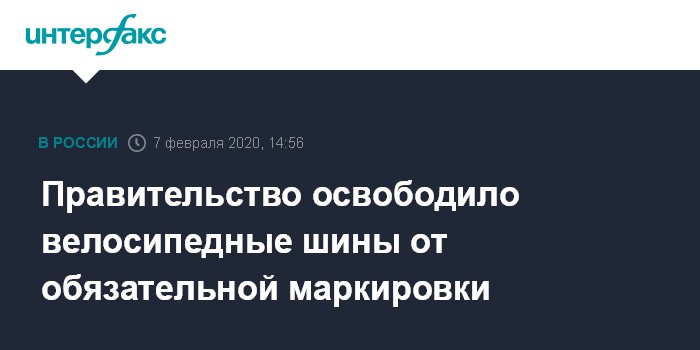 Москва. 7 февраля. INTERFAX.RU - Правительство исключило из списка товаров, подлежащих обязательной маркировке средствами идентификации, велосипедные камеры, покрышки и ободные ленты, а также велосипедные и авиационные шины. Соответствующее распоряжение уже опубликовано.