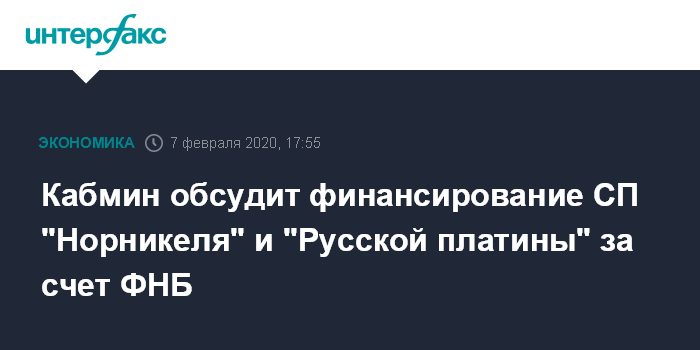 Кабмин обсудит финансирование СП "Норникеля" и "Русской платины" за счет ФНБ