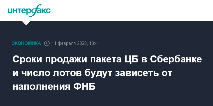 Москва. 11 февраля. INTERFAX.RU - Сроки реализации пакета ЦБ РФ в Сбербанке России, а также определение количества лотов акций для продажи будут зависеть от наполнения Фонда национального благосостояния (ФНБ), сообщили "Интерфаксу" в пресс-службе Банка России.