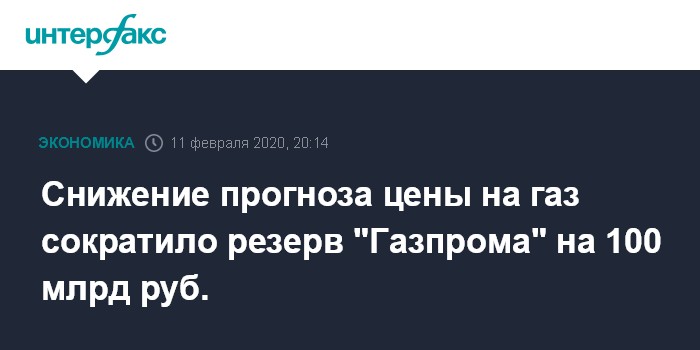 Москва. 11 февраля. INTERFAX.RU - "Газпром" заложил в бюджет компании на 2020 год экспортную цену газа в $200 за тысячу кубических метров, но уже на 1 февраля прогноз цены был снижен до $175-185 за тысячу кубометров, что сократило созданный под нивелирование негативной внешней конъюнктуры резерв с 676,5 млрд рублей до 576,5 млрд рублей, сообщил зампред правления компании Фамил Садыгов в ходе Дня инвестора.