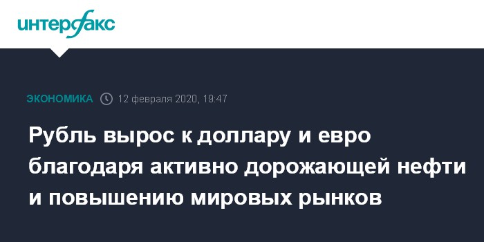Как отмечают эксперты "Интерфакс-ЦЭА", рубль вечером продолжает демонстрировать укрепление к доллару и евро на фоне позитивной динамики мировых рынков и активно дорожающей нефти, отыгрывающих сигналы замедления темпов распространения китайского коронавируса.