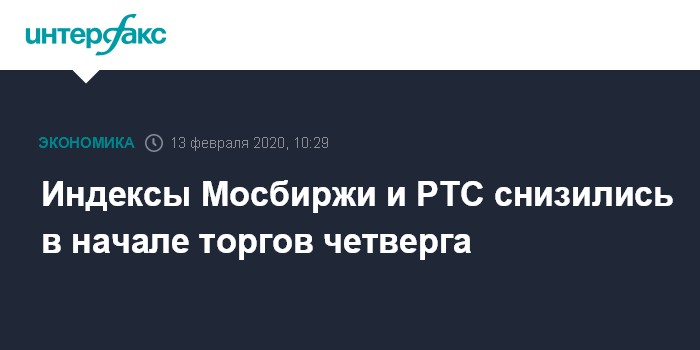 Москва. 13 февраля. INTERFAX.RU - Российский рынок акций начал торги четверга снижением цен blue chips на фоне наметившейся коррекции мировых фондовых индикаторов из-за новых данных о росте числа инфицированных коронавирусом в Китае.