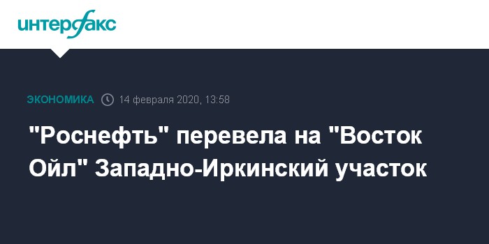 "Роснефть" перевела на "Восток Ойл" Западно-Иркинский участок