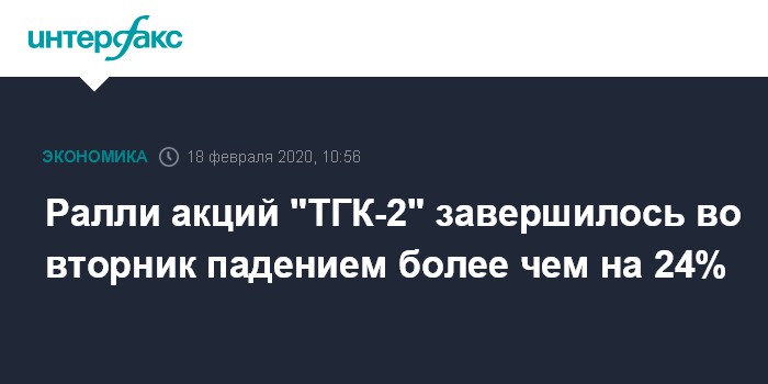 Москва. 18 февраля. INTERFAX.RU - Ралли акций "ТГК-2" (MOEX: TGKB), наблюдавшееся с начала второй декады февраля и не подкрепленное корпоративными новостями, завершилось во вторник утром обвалом бумаг более чем на 24% после обновления акциями пиков с июня 2010 года.