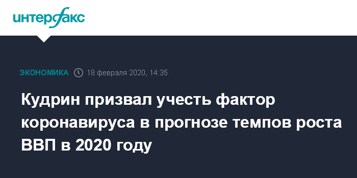 Москва. 18 февраля. INTERFAX.RU - Председатель Счётной палаты Алексей Кудрин не уверен в прогнозе правительства о росте экономики РФ в 2020 году в 1,9%, считает, что нужно учитывать и негативные факторы, например, китайский коронавирус.