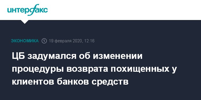 ЦБ задумался об изменении процедуры возврата похищенных у клиентов банков средств