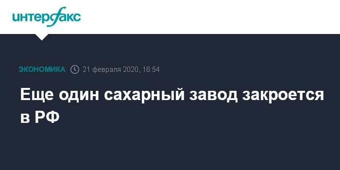 Москва. 21 февраля. INTERFAX.RU - В России закрывается еще один сахарный завод. Причина - как и у прежних закрытий: отрицательные финансовые показатели, вызванные резким снижением цен на сахар.