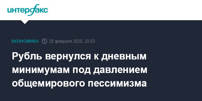 "На внутреннем валютном рынке во второй половине дня была попытка рубля немного отойти от дневных минимумов в основных валютных парах, но с открытием торгов в США, где фондовые индексы после локального отскока вновь устремились вниз, нацвалюта вернулась к минимальным значениям сегодняшнего дня. Мировые рынки сейчас находятся под давлением негативных новостей и сообщений относительно китайского коронавируса. Глобальные инвесторы опасаются, что ситуация в мировой экономике будет ухудшаться, поэтому до конца этой недели мы может увидеть дальнейшее снижение спроса участников рынка на рисковые активы, включая товарные активы и валюты развивающихся стран, в том числе рубля", - прокомментировал "Интерфаксу" ситуацию на рынке аналитик отдела управления активами УК "Промсвязь" Гельды Союнов.