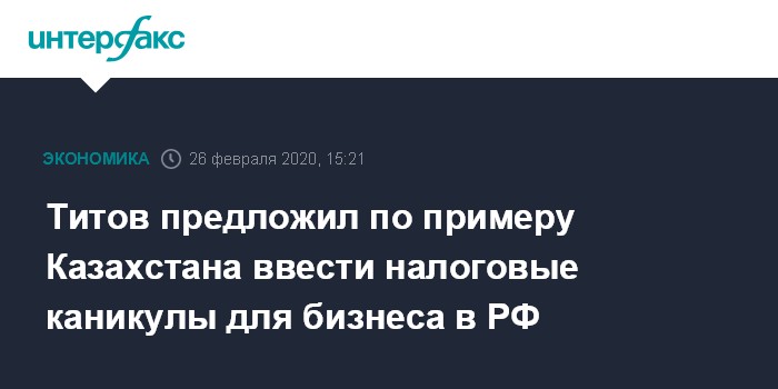 Москва. 26 февраля. INTERFAX.RU - Уполномоченный при президенте РФ по защите прав предпринимателей Борис Титов считает необходимым последовать примеру Казахстана и предоставить малому и среднему бизнесу России налоговые каникулы на три года или более, чтобы сделать его более конкурентоспособным.