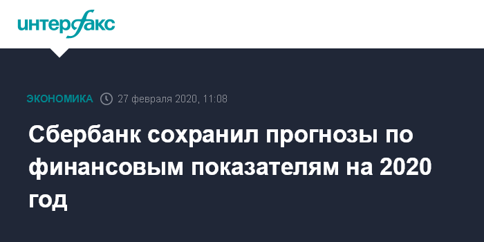 Москва. 27 февраля. INTERFAX.RU - Сбербанк России оставил без изменения прогнозы по своим финансовым показателям в 2020 году, следует из материалов банка к отчету по МСФО за 2019 год.
