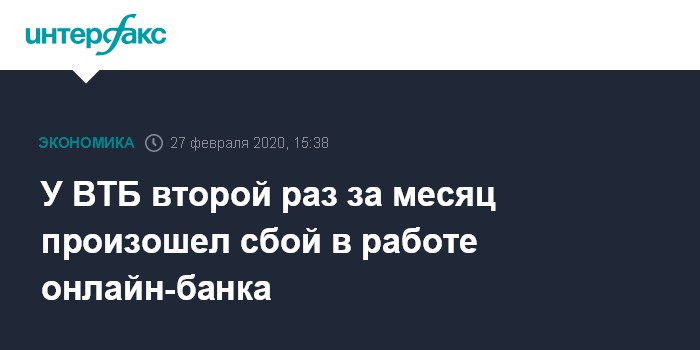 Москва. 27 февраля. INTERFAX.RU - Клиенты ВТБ второй раз за месяц испытывают проблемы при входе в систему "ВТБ-Онлайн". У ряда клиентов зафиксированы ошибки при проведении операций по картам.