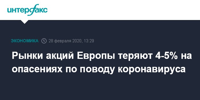 Рынки акций Европы теряют 4-5% на опасениях по поводу коронавируса