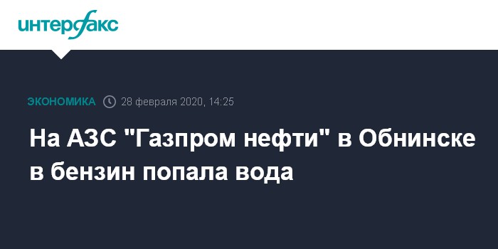 Москва. 28 февраля. INTERFAX.RU - В Обнинске на автозаправке "Газпром нефти" в резервуар с бензином АИ-95 аварийно попала вода, продажа этого бензина прекращена, сообщила пресс-служба компании.