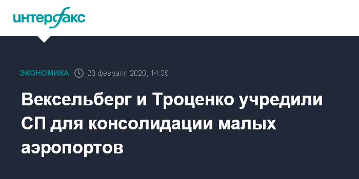 Москва. 28 февраля. INTERFAX.RU - Контролируемое Виктором Вексельбергом АО "УК "Аэропорты регионов" и ООО "Новапорт холдинг" Романа Троценко учредили в конце февраля совместное предприятие ООО "АБС", свидетельствуют данные системы "СПАРК-Интерфакс".