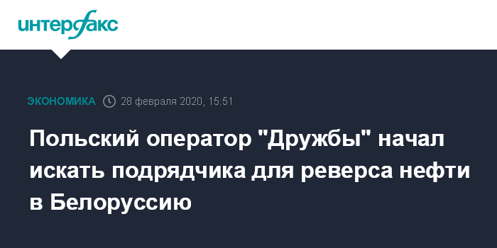 Москва. 28 февраля. INTERFAX.RU - Польский оператор магистрального нефтепровода "Дружба" PERN заявил о возможности запуска прокачки нефти из Польши на территорию Белоруссии.