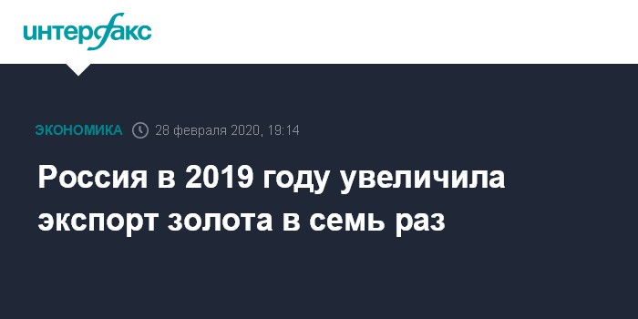 Россия в 2019 году увеличила экспорт золота в семь раз