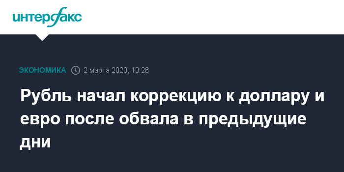 Как отмечают эксперты "Интерфакс-ЦЭА", рубль корректируется вверх к доллару и евро после сильного падения на прошлой неделе. Участники рынка позитивно реагируют на повышение нефтяных цен и рост вероятности смягчения денежно-кредитной политики ФРС США для поддержания экономического роста в стране после того, как глава Федеральной резервной системы США Джером Пауэлл в пятницу заявил, что Федрезерв "внимательно следит" за ситуацией с COVID-19.