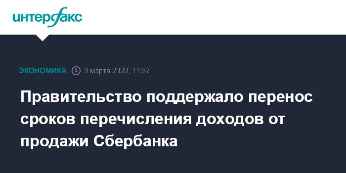 Правительство поддержало перенос сроков перечисления доходов от продажи Сбербанка