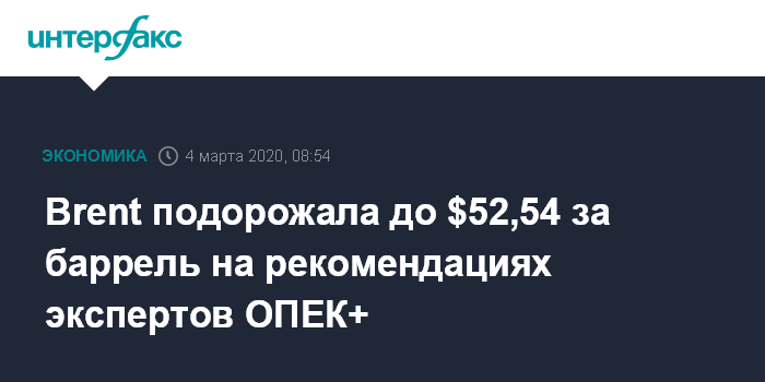 Brent подорожала до $52,54 за баррель на рекомендациях экспертов ОПЕК+
