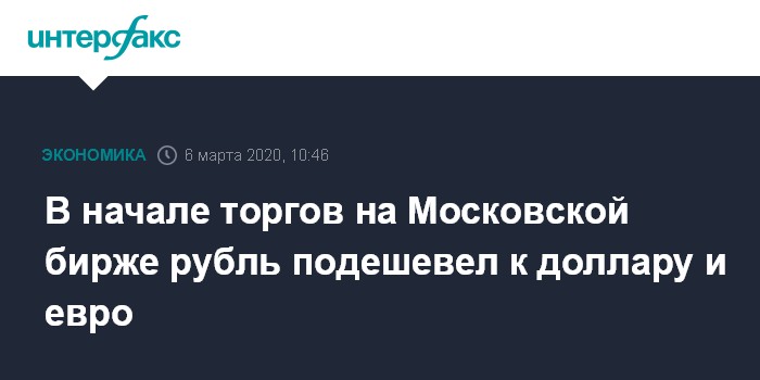 Как отмечают эксперты "Интерфакс-ЦЭА", рубль ослабел к доллару и евро на старте торгов пятницы на фоне заметного падения мировых рынков и дешевеющей нефти. Инвесторы предпочитают переводить средства в безопасные активы из-за неопределенности относительно развития ситуации с коронавирусом и его влияния на мировую экономику.