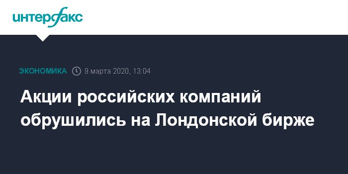 Москва. 9 марта. INTERFAX.RU - Акции российских компаний на Лондонской фондовой бирже в понедельник обрушились из-за обвала нефтяных цен.