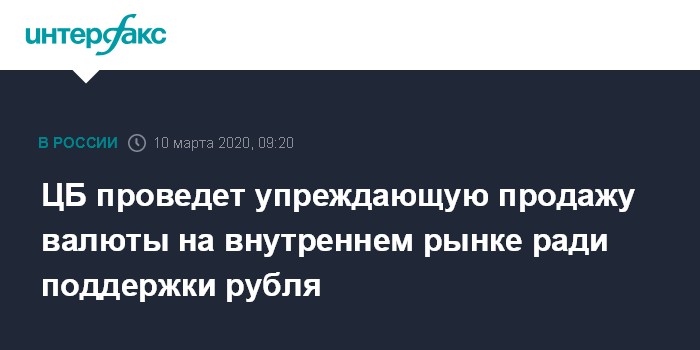 Москва. 10 марта. INTERFAX.RU - Банк России для поддержки рубля, который дешевеет вслед за обвалом котировок нефти, решил начать валютные интервенции на внутреннем рынке. Об этом сообщила пресс-служба регулятора.