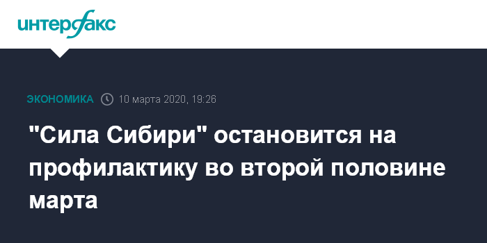 Москва. 10 марта. INTERFAX.RU - Запущенный в декабре прошлого года экспортный газопровод в Китай "Сила Сибири", как и любой другой газопровод, нуждается в остановках для технического обслуживания.