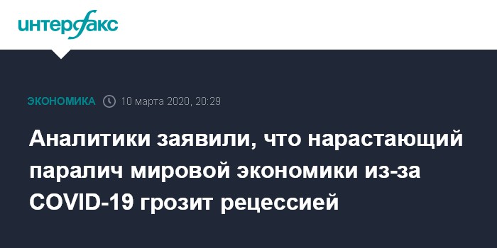 Аналитики заявили, что нарастающий паралич мировой экономики из-за COVID-19 грозит рецессией