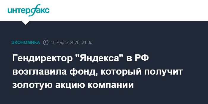 Гендиректор "Яндекса" в РФ возглавила фонд, который получит золотую акцию компании