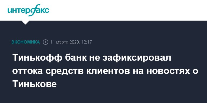 Тинькофф банк не зафиксировал оттока средств клиентов на новостях о Тинькове