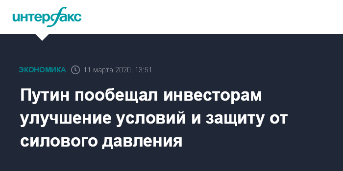 Путин пообещал инвесторам улучшение условий и защиту от силового давления
