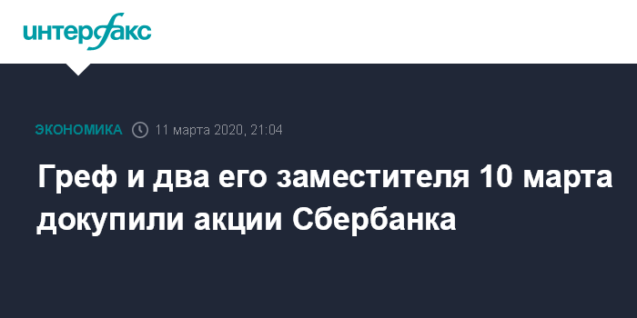 Греф и два его заместителя 10 марта докупили акции Сбербанка