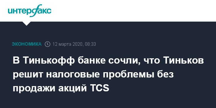 В Тинькофф банке сочли, что Тиньков решит налоговые проблемы без продажи акций TCS