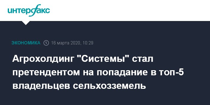 Агрохолдинг "Системы" стал претендентом на попадание в топ-5 владельцев сельхозземель