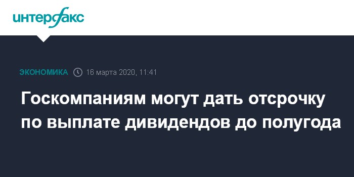 Госкомпаниям могут дать отсрочку по выплате дивидендов до полугода