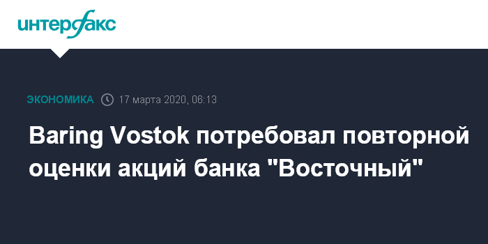 Baring Vostok потребовал повторной оценки акций банка "Восточный"