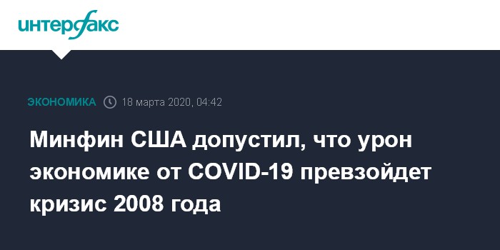Минфин США допустил, что урон экономике от COVID-19 превзойдет кризис 2008 года