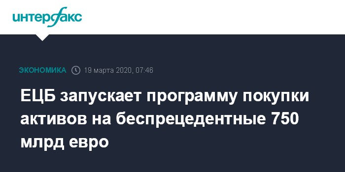 ЕЦБ запускает программу покупки активов на беспрецедентные 750 млрд евро