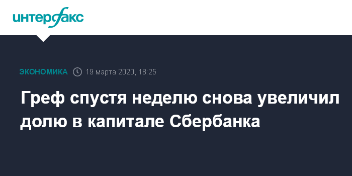 Греф спустя неделю снова увеличил долю в капитале Сбербанка
