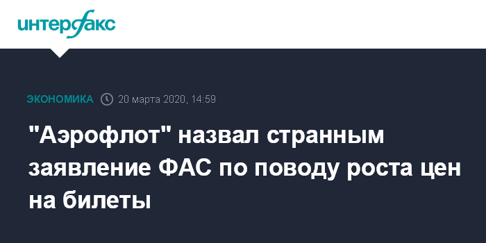 Ранее ФАС сообщила, что требует от "Аэрофлота" обеспечить доступность цен на билеты на фоне ситуации с коронавирусом, а компенсировать возникающие в связи с этим потери предложила увеличением транссибирских роялти.