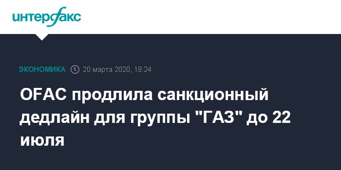 OFAC продлила санкционный дедлайн для группы "ГАЗ" до 22 июля