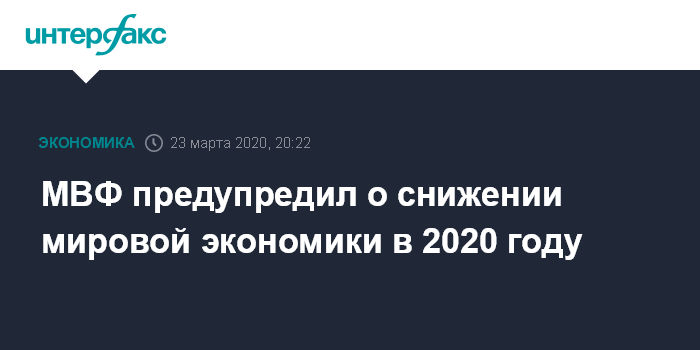 Москва. 23 марта. INTERFAX.RU - Прогноз для глобальной экономики негативный, ожидается снижение мирового ВВП в 2020 году, сообщила глава Международного валютного фонда Кристалина Георгиева в понедельник.