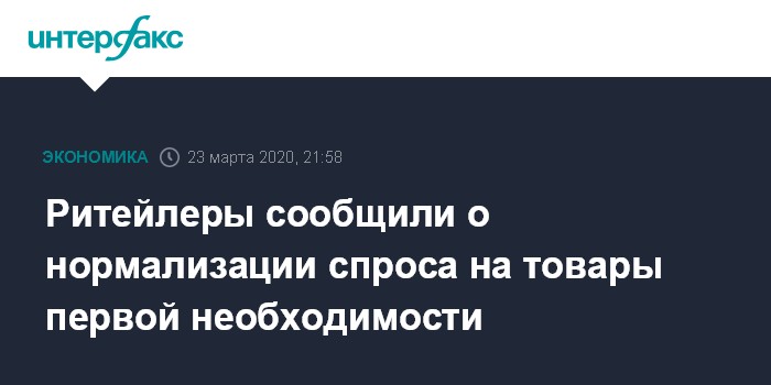 Москва. 23 марта. INTERFAX.RU - Ритейлеры отмечают стабилизацию спроса на продукты и непродовольственные товары первой необходимости после ажиотажа неделей ранее, вызванного опасениями из-за коронавируса.