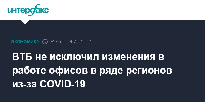 ВТБ не исключил изменения в работе офисов в ряде регионов из-за COVID-19