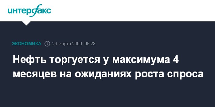 Москва. 24 марта. INTERFAX.RU - Нефть торгуется у максимальных отметок за последние 4 месяца на росте фондового рынка США, который может стимулировать подъем экономики и спрос на топливо, сообщило агентство Bloomberg.