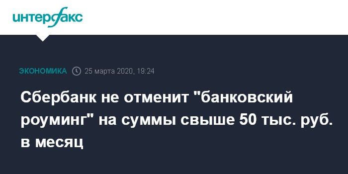 Сбербанк не отменит "банковский роуминг" на суммы свыше 50 тыс. руб. в месяц