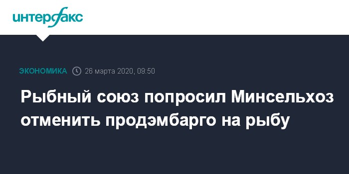 Москва. 26 марта. INTERFAX.RU - Рыбный союз, в который входят ведущие переработчики рыбы, такие как "Русское море", "Меридиан", "Агама", попросил Минсельхоз исключить рыбу из перечня продукции, импорт которой запрещен с 2014 года в рамках с российскими антисанкциями. Об этом говорится в письме организации.