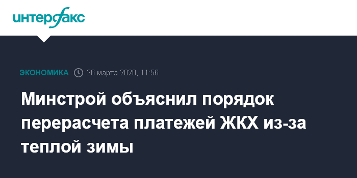 Минстрой объяснил порядок перерасчета платежей ЖКХ из-за теплой зимы