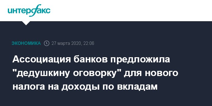 Ассоциация банков предложила "дедушкину оговорку" для нового налога на доходы по вкладам